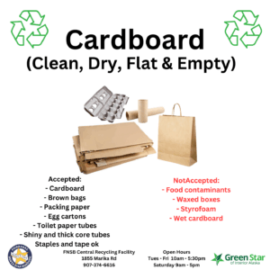 2026 FNSB recycling survey Δ Unique IDThis is an anonymous survey about Recycling in the Fairbanks North Star Borough. Please only complete this survey if you live in or operate a business / organization within the Fairbanks North Star Borough Please allow 7-15 minutes to answer a series of questions about your experience with waste reduction and recycling in FNSB, and to share your thoughts on how recycling should evolve in FNSB. Your responses are anonymous, although you will have an opportunity to identify yourself or your organization at the end of the survey if you choose to do so. Thank you for your time and your input.Respondent type(Required)Are you responding to this survey on behalf of a business / organization or individual / family? Family / Individual Business / Organization How long have you lived / operated in FNSB(Required)Less than a year1-5 years5-10 years10-20 years21-30 yearsOver 30 yearsLocation(Required)Within FNSB, are you located inside Fairbanks city limits? Inside Fairbanks city limits Outside Fairbanks city limits What is your primary transfer site? (optional)FNSB transfer sites are for residential use only and do not accept recycling other than automotive batteries and household hazardous waste (scrap metal, large appliances and automobiles are also accepted for recycling at the FNSB Sanitary Landfill). For your non-recyclable trash, what is your primary transfer site?Badger RoadChatanika (North site)Chena PumpEsterFarmers Loop EastFarmers Loop WestFoxMoose CreekNorth PoleSalchaSalcha River State Recreation Site (summer only)Solid Waste Facility (Landfill)Two RiversNumber in household(Required)12345678910More than 10Age range of respondent(Required)Under 1818-2425-3435-4445-5455-6465 or AbovePrefer Not to AnswerOrganization size(Required)1-56-1011-2021-3031-5050-100100-1000Over 1000Are you aware of the FNSB Central Recycling Facility (CRF)?(Required) Yes No Do you currently use the FNSB CRF? Yes No How often do you visit the CRF?(Required)Every day2 to 3 times a weekOnce a week2 to 3 times a monthOnce a monthLess than once a monthQuarterlySemi AnnuallyOnce a yearRecycling methods(Required)Please select all recycling methods your organization uses. FNSB Central Recycling Facility (CRF) Other local recyclers In-house recycling / backhaul program Other We do not recycle Whose recyclables are you dealing with?(Required)Please let us know from where your organization receives recyclable materials Select All Those generated by our organization Employees bring in their personal recycling to go along with our organization’s Customers can leave their recycling with us The general public can drop off recycling with us Who takes your recycling to the CRF? (optional) We take it ourseves A commercial hauler takes them We self-deliver and use commercial haulers How often does your business / organization use the CRF?(Required)More than once per dayEvery day2 to 3 times a weekOnce a week2 to 3 times a monthOnce a monthLess than once a monthQuarterlySemi AnnuallyOnce a yearEarly drop off (optional)Are you aware that businesses can call to arrange early drop off before the CRF opens to the public? Yes No Do you currently utilize early drop off? (optional) Yes No Are you aware of public tours of the CRF, Landfill and / or Green Star's Electronics Recycling Warehouse?(Required) Yes No Which facilities have you toured? (optional) None FNSB Central Recycling Facility FNSB Sanitary Landfill Green Star Electronics Recycling warehouse Fairbanks Community Food Bank Given that you were not familiar with the FNSB CRF before now, please rate the following statements: (optional)Strongly disagreeDisagreeNeutralAgreeStrongly agreeUndecided / UnsureRecycling is worth the effortKeeping things out of our landfill which don’t need to be buried is importantI would recycle given the correct information and opportunityI recycled in previous places I have livedNow that you know there is recycling in FNSB, which of the currently accepted materials might you be willing to recycle?(Required)The following materials are currently accepted at the FNSB Central Recycling Facility. Please click each of the materials you would consider recycling now that you know about recycling in FNSB. Aluminum beverage containers Batteries (non-automotive) Cardboard Electronics Eyeglasses Paper (mixed) Paper (office) Plastic #1 bottles and jugs Plastic #2 bottles and jugs Steel / tin food cans None Thoughts? (optional)Given your answer to the previous question, would you mind sharing your thoughts about recycling in general, and recycling in Alaska and the FNSB specifically? We would love to know why you answered the last question the way you did, Why have you chosen not to use the FNSB Central Recycling FacilityWould you mind sharing your reasons for not using the FNSB CRF, as well as any thoughts about recycling in general, and recycling in Alaska and the FNSB specifically? We would love to know your thoughts, All of the materials below are currently accepted at the CRF. Which do you recycle?(Required)Please click each of the materials you recycle at the FNSB CRF. Aluminum beverage containers Batteries (non-automotive) Cardboard Electronics Eyeglasses Paper (mixed) Paper (office) Plastic #1 bottles and jugs Plastic #2 bottles and jugs Steel / tin food cans If you could choose one material to add to those accepted at the CRF, what would it be? (optional)Thinking about how to divert more from the FNSB landfill, what one thing would have the most impact if we could add something to the CRF acceptable materials list? Examples might include: food waste / composting, other types of plastic, glass, tires, scrap metal, brush / wood, etc. What is at the top of your wish list?Thinking about your experience with the CRF and the facts below, please rate your agreement with the following statements:Some facts about the FNSB Central Recycling Facility: The FNSB CRF is located at 1855 Marika Rd. (off of Aurora) The CRF is open to