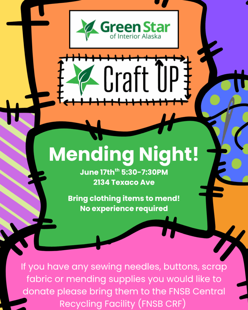 If you have sewing/mending supplies you would like to donate please contact or drop off with your regular recycling at the FNSB Central Recycling Facility.