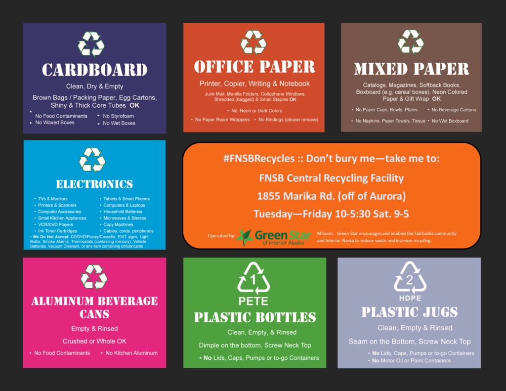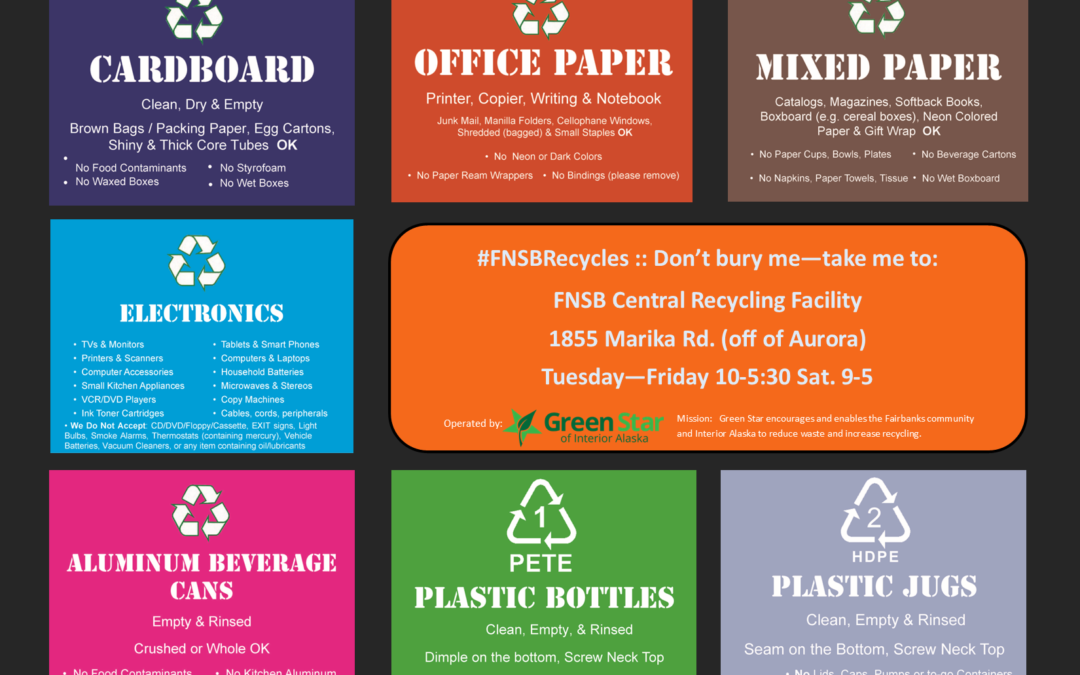 Just a friendly reminder that FNSB Recycles! Please consider helping to keep things which need not be buried from filling up our landfill.