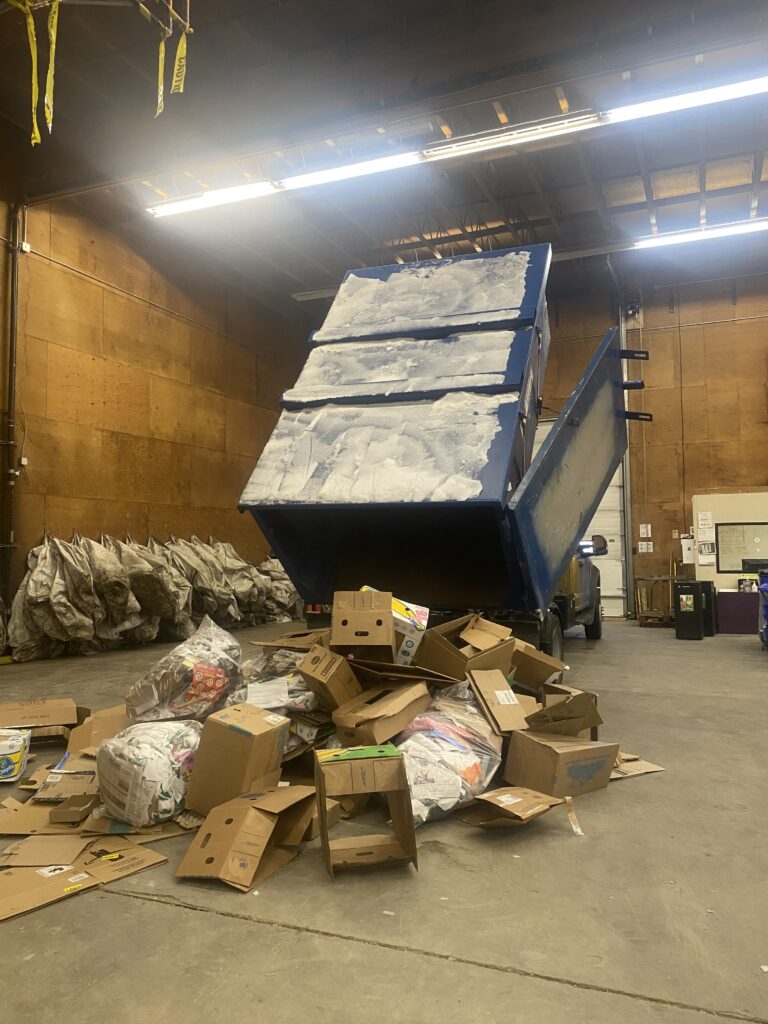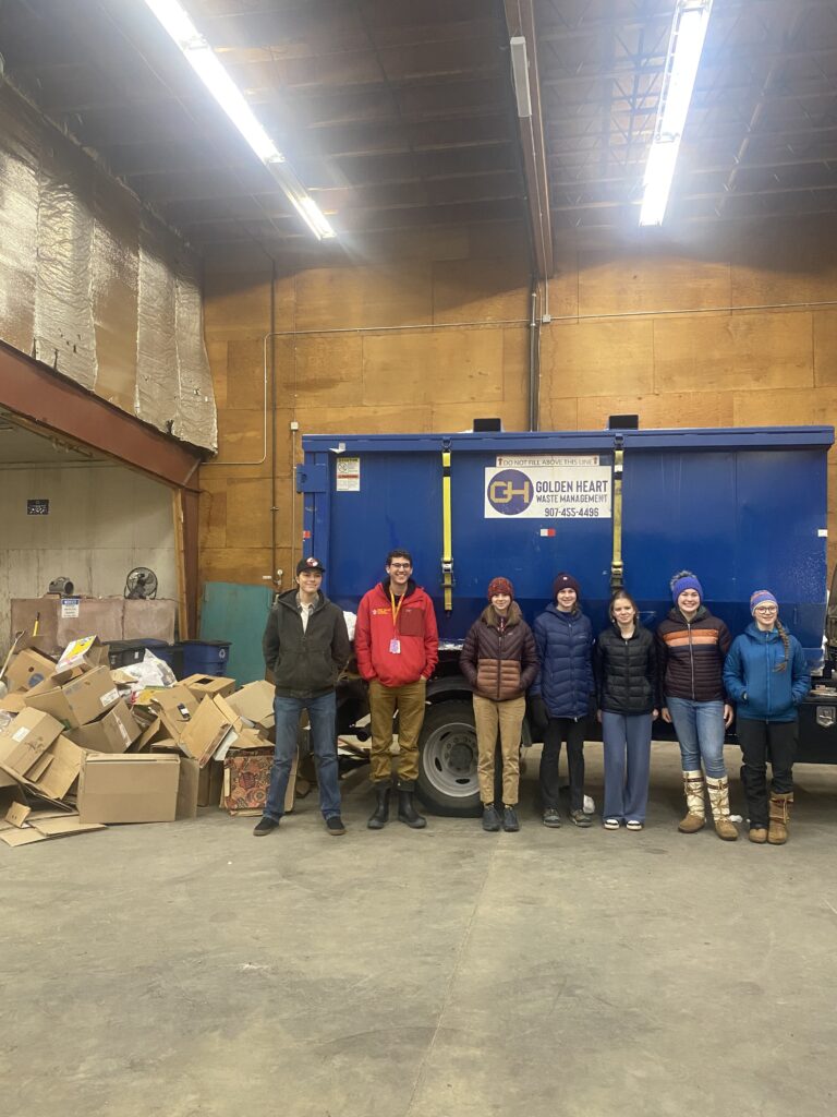 Monday November 11th was a historic first at the FNSB Central Recycling Facility (CRF). Golden Heart Waste Management (GHWM) delivered the first recycling dumpster load from West Valley High School (WVHS). West Valley’s Climate Defense League (CDL) has been working with GHWM, Explore Fairbanks and Green Star of Interior Alaska (GSIA) to implement a student-led recycling program at their school. Members of all organizations were present at the CRF for the historic inaugural drop of West Valley’s recycling. In just the first few weeks, over 500 pounds will be recycled instead of landfilled! Thank you to all the students who organized to make this possible and for your vision and persistence which made WVHS the first FNSB School with a recycling dumpster. You are making a difference that matters!