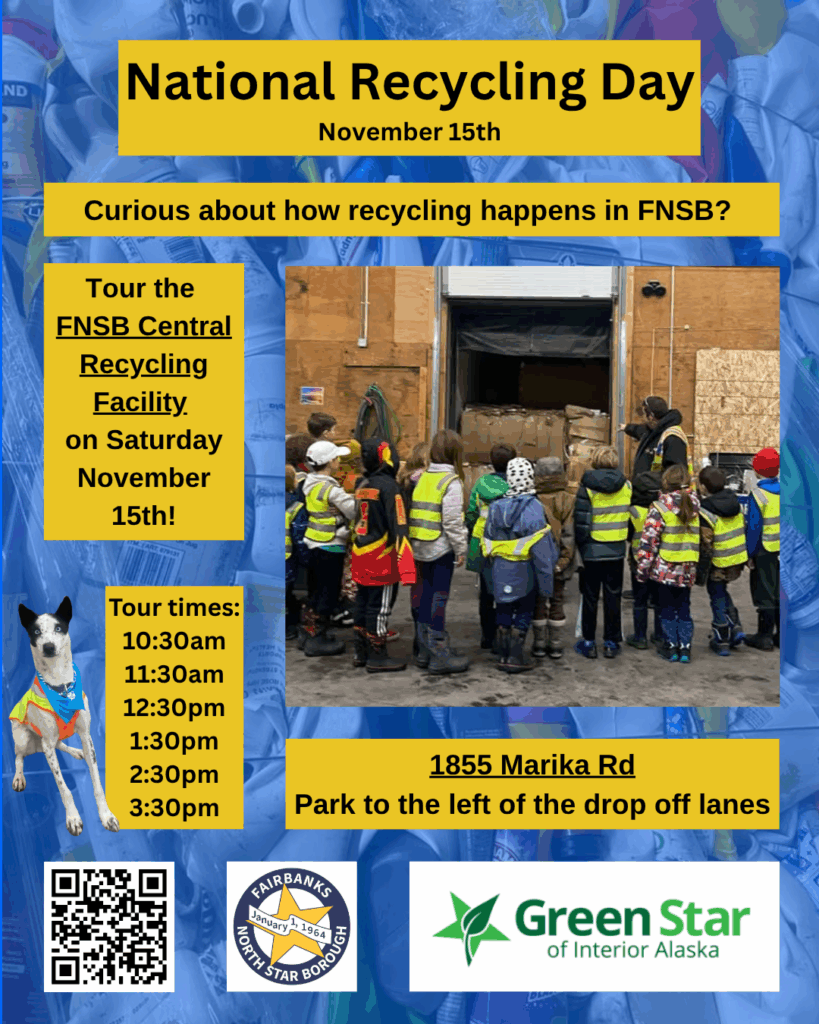 National Recycling Day is coming up and we are continuing our tradition of celebrating with Fairbanks North Star Borough by putting on tours of the FNSB Central Recycling Facility!