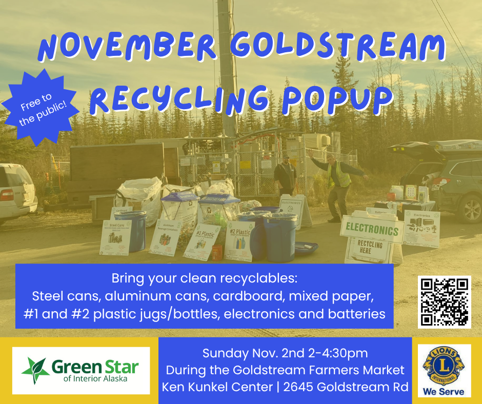 | Goldstream Recycling Popups are back this Sunday November 2nd! We will be at the Ken Kunkle Community Center at 2645 Goldstream Rd from 2-4:30 collecting residents recycling during the Winter Goldstream Market. Drop off your recycling and look at community vendors in one trip! At the October Market residents turned in: |