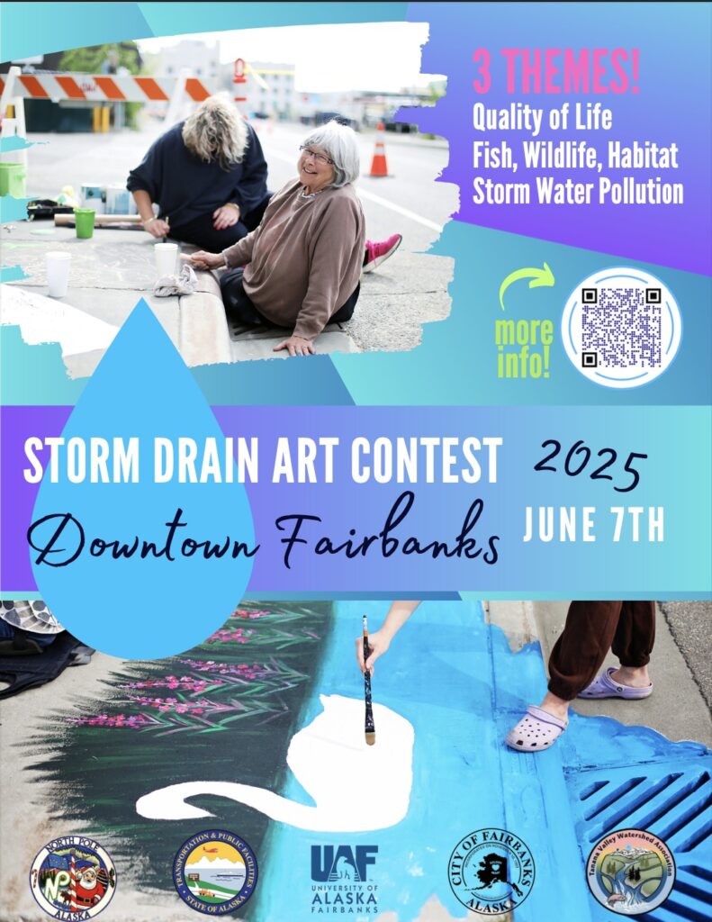 Every year Tanana Valley Watershed Association (TVWA) spearheads the annual Storm Drain Art Project in downtown Fairbanks to raise awareness that our storm water goes into the Chena and affects our waterways
